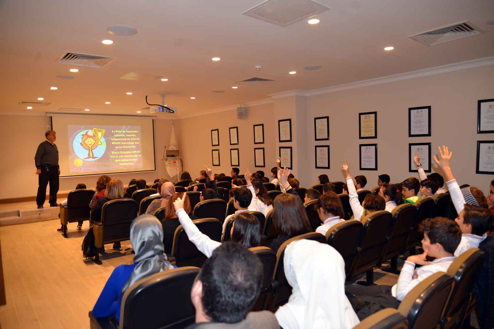 UNESCO Dünya Mirası Gezginleri Derneği Başkanı Sayın Atila EGE Çocuk Meclisi Üyelerine ülkemizdeki ve dünyadaki UNESCO Dünya Mirası Alanları, Dünya Mirası Listesi, Dünya Mirası Listesinin oluşma öyküsü, Geçici Liste, UNESCO’nun doğal, kültürel ve karma miras alanı seçim ve değerlendirme kriterlerine ilişkin değerli bilgiler paylaşmıştır.