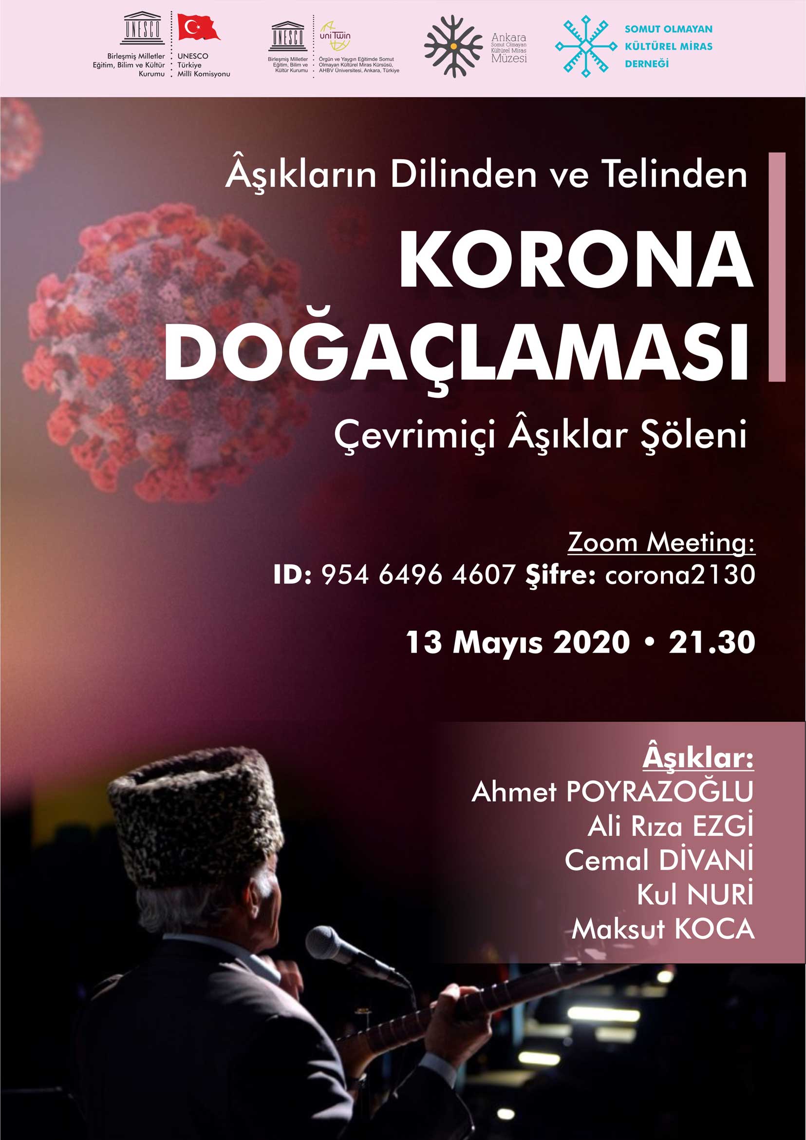 UNESCO Genel Direktörlüğünün verdiği bu örneklerden de görüleceği gibi topluluklar, Covid-19 salgını sürecinde pek çok açıdan Somut Olmayan Kültürel Mirasa kaçınılmaz olarak başvurmaktadır. Bu kapsamda Millî Komisyonumuz da Covid-19 salgını sürecini âşıkların dilinden görmek amacıyla 13 Mayıs 2020 tarihinde “Âşıkların Dilinden ve Telinden Korona Doğaçlaması Çevrimiçi Âşıklar Şöleni” adlı etkinlik gerçekleştirecektir.