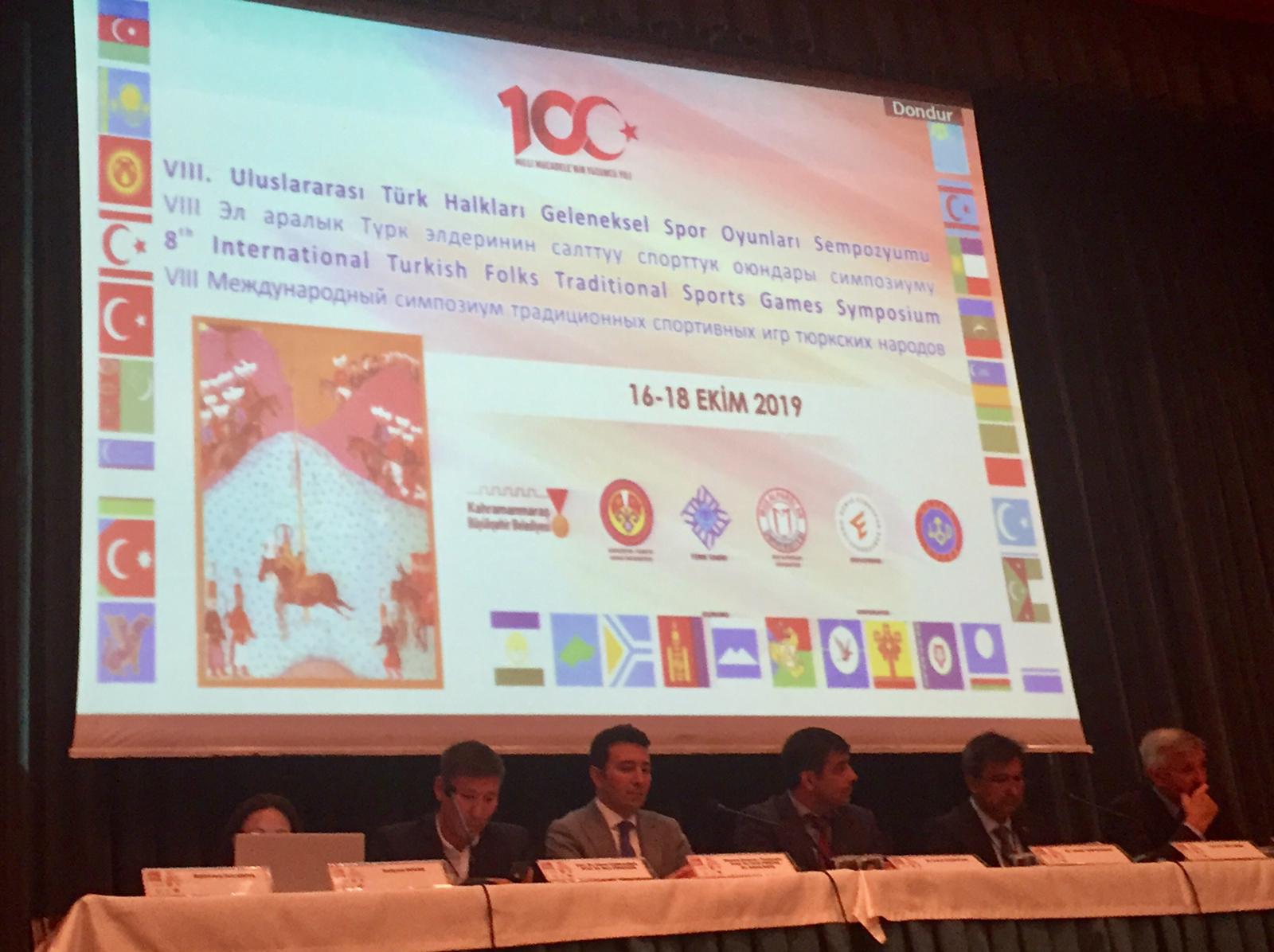 16- 18 Ekim 2019 tarihlerinde Kahramanmaraş Büyükşehir Belediyesi, Kırgızistan-Türkiye Manas Üniversitesi ve Dünya Etnospor Konfederasyonunun işbirliği ve Türk Tarih Kurumu, Muş Alparslan Üniversitesi desteğiyle VIII. Uluslararası Türk Halkları Geleneksel Spor Oyunları Sempozyumu Kahramanmaraş’ta düzenlendi. Sempozyuma UNESCO Türkiye Millî Komisyonu Başkanı ve Etnospor Konfederasyonu Yönetim Kurulu Üyesi olarak davet edilen Sayın M. Öcal OĞUZ, geleneksel spor ve oyunların kültürlerin kuşaktan kuşağa aktarımındaki önemini ve toplumsal duyarlılığı sağlama rolünü vurguladı.
