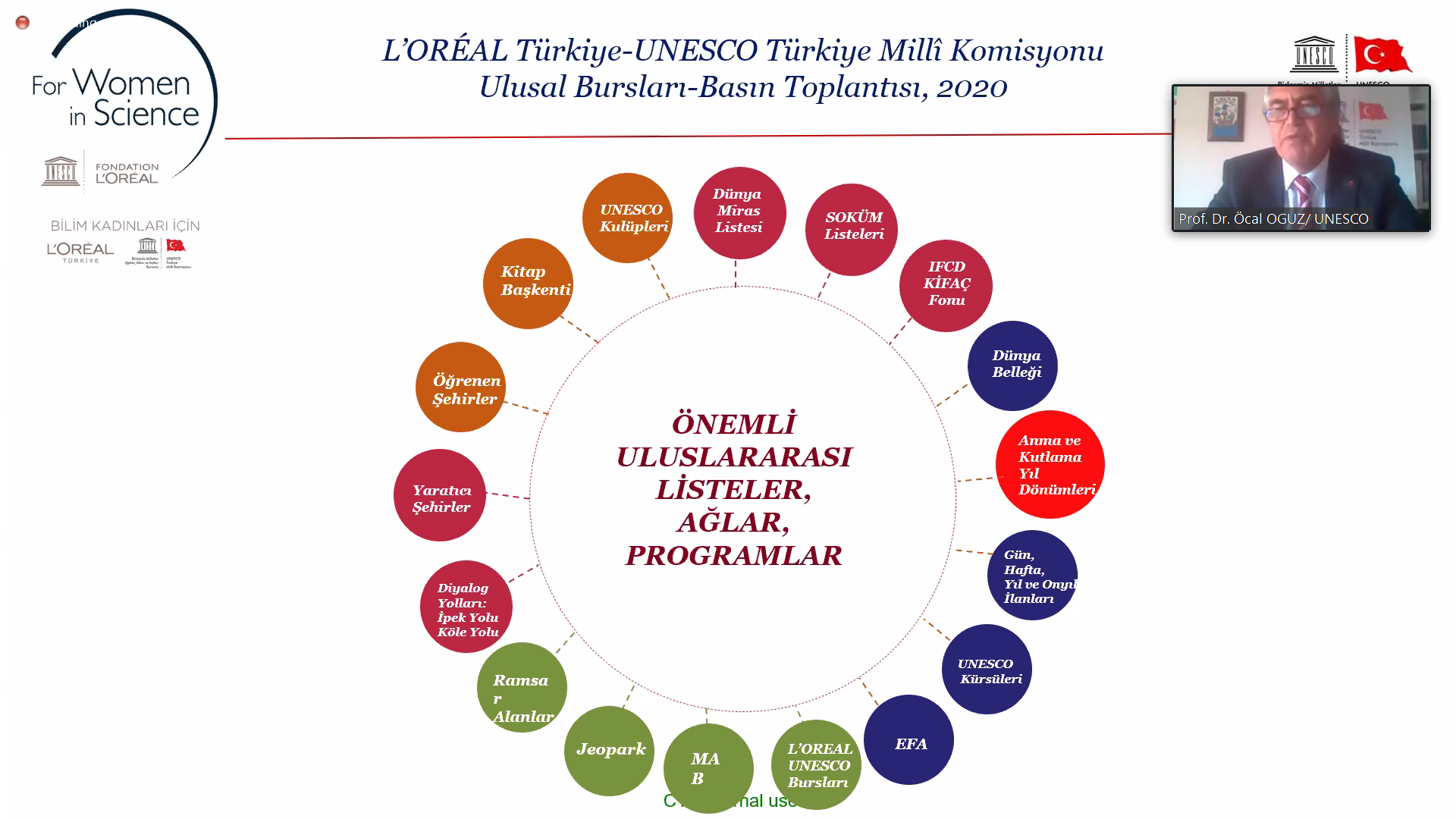 UNESCO Türkiye Millî Komisyonunun özel sektör temsilcilerinden L’Oréal Türkiye ile yaptığı işbirliği doğrultusunda 2013 yılından beri başarıyla yürütülen UNESCO Türkiye Millî Komisyonu ve L’Oréal Türkiye Ulusal Genç Bilim Kadınlarına Destek Bursları 2020 Ödülleri 23 Eylül 2020 tarihinde çevrim içi olarak gerçekleştirilen toplantıyla duyuruldu.