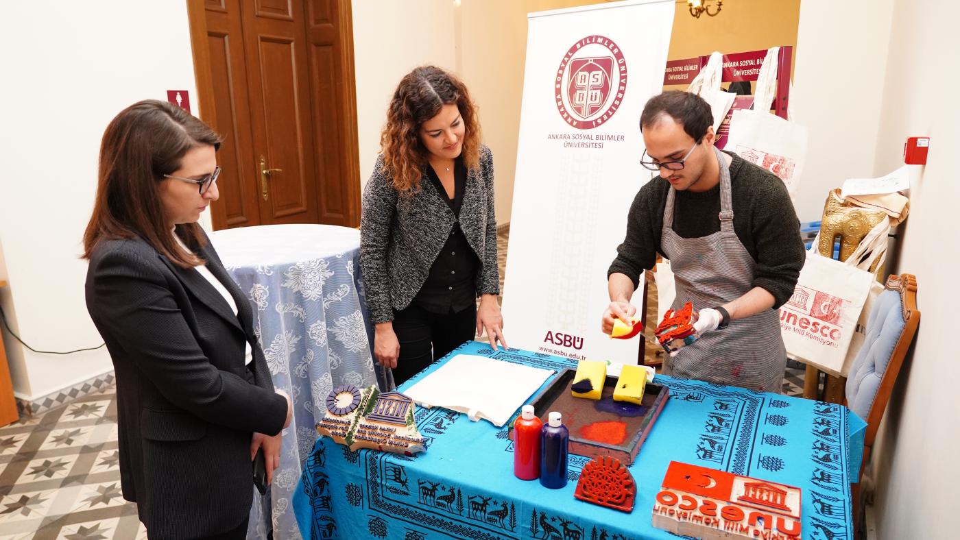 Konferans programı süresince Ankara Somut Olmayan Kültürel Miras Müzesi tarafından fuaye alanında kurulan stantta ıhlamur baskı çalışması da yapıldı.