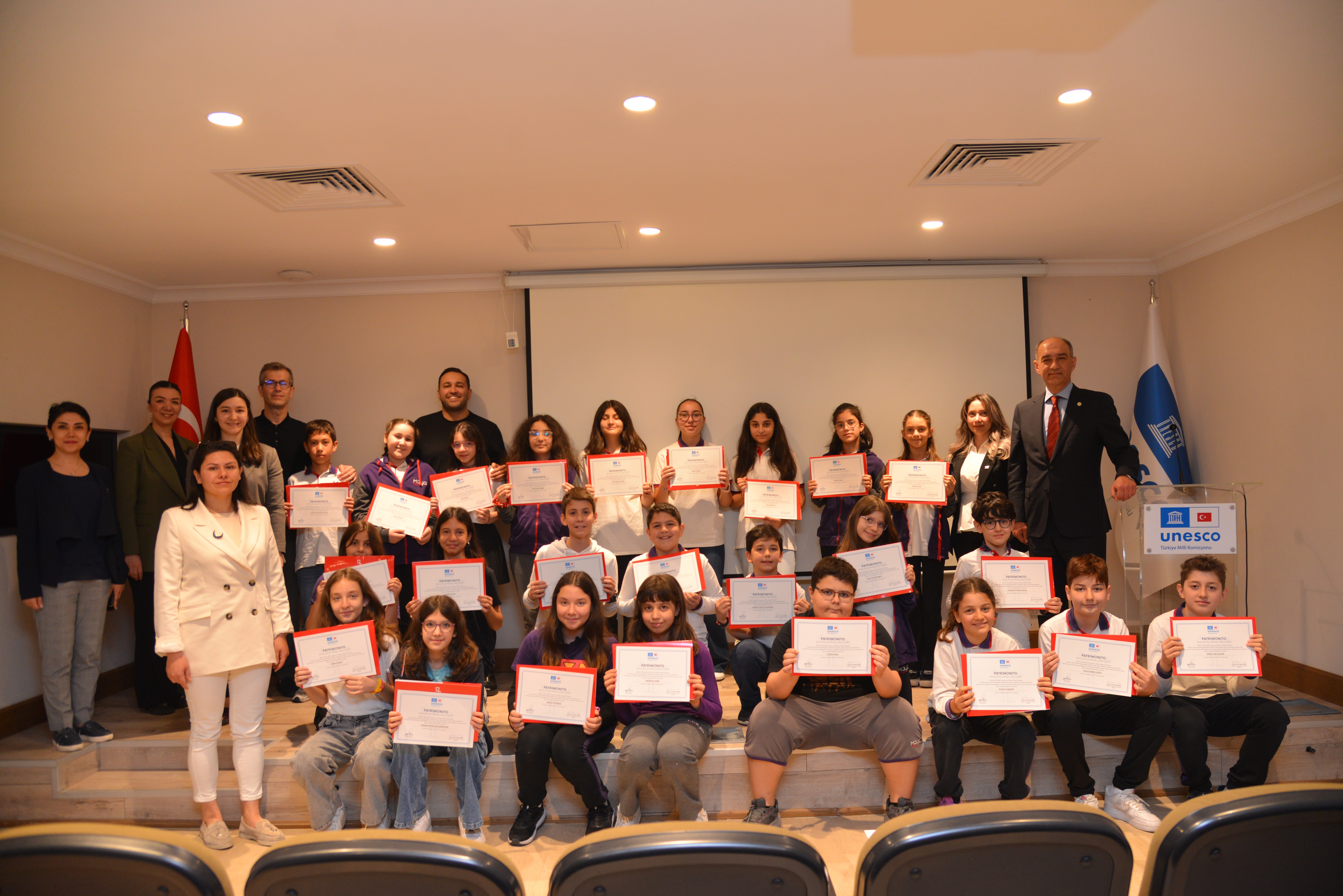 Miras alanlarının korunması ve gelecek nesillere aktarılması bilincini artırmak amacıyla, 24 Nisan 2025 tarihinde okullarında düzenlenen “UNESCO Dünya Mirası Alanları” konulu seminere katılan öğrenciler, ayrıca miras alanlarına yönelik saha gezilerine katılarak yerinde bilgi edineceklerdir. Sertifika almaya hak kazanan öğrenciler için UNESCO Türkiye Millî Komisyonu Hizmet Binası’nda düzenlenen sertifika töreni başarıyla tamamlanmıştır.