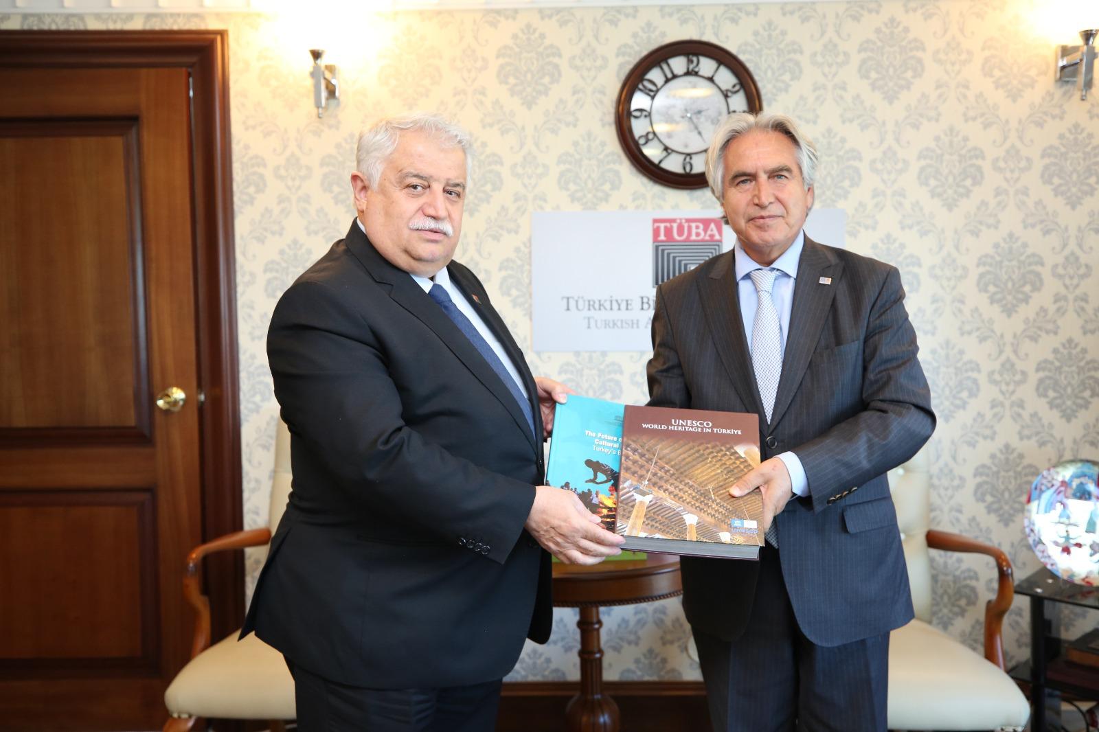 UNESCO Türkiye Millî Komisyonu Başkanı Prof. Dr. M. Öcal OĞUZ ve UNESCO Türkiye Millî Komisyonu Yönetim Kurulu Üyesi ve Türkiye Bilimler Akademisi Asli Üyesi Prof. Dr. Mustafa SAFRAN 28 Mayıs 2025 tarihinde Türkiye Bilimler Akademisi Başkanı Prof. Dr. Muzaffer ŞEKER’i makamında ziyaret etti. Görüşmede, UNESCO Türkiye Millî Komisyonu çalışmaları ve UNESCO’nun faaliyet alanlarındaki konular kapsamında görüş alışverişinde bulunulmuştur.