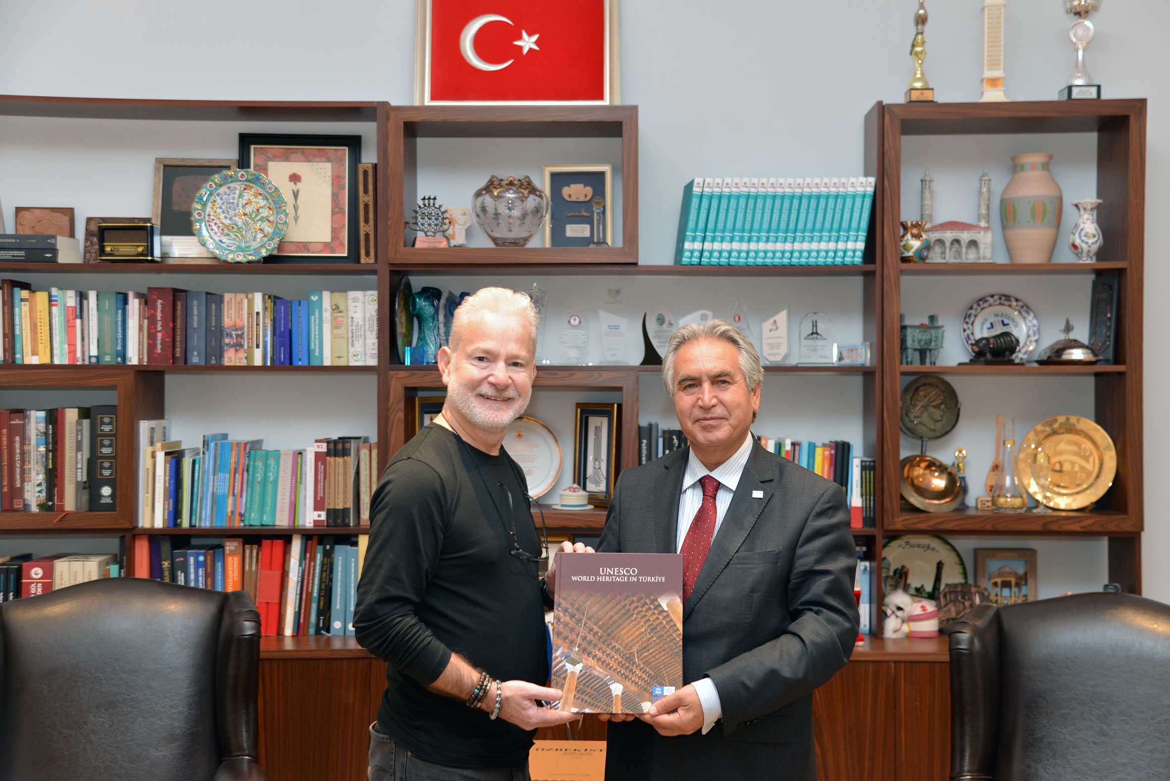 Yapımcı Metin KALKAVAN 9 Ekim 2025 tarihinde UNESCO Türkiye Millî Komisyonu Başkanı Prof. Dr. M. Öcal OĞUZ’u makamında ziyaret etmiştir. UTMK Genel Sekreter Yardımcısı V. Dr. Azize ÖKTEN’in de katıldığı ziyarette, Sayın KALKAVAN, Türkiye’den Türkistan’a uzanan coğrafyanın derin izlerini, geleneksel motifleri, sözlü kültürü, zengin mitolojiyi ve toplumsal belleği sinematik dile dönüştürdüğünü, Türk Dünyasının sınırlarını aşan kültürel kodları yaratıcı belgesel projelerinde, sinema diliyle, sürdürülebilir kültür endüstrileri perspektifiyle yakalamayı amaçladığı çalışmalarını aktarmış ve UNESCO programları doğrultusunda yapılabilecek olası iş birlikleri değerlendirilmiştir.