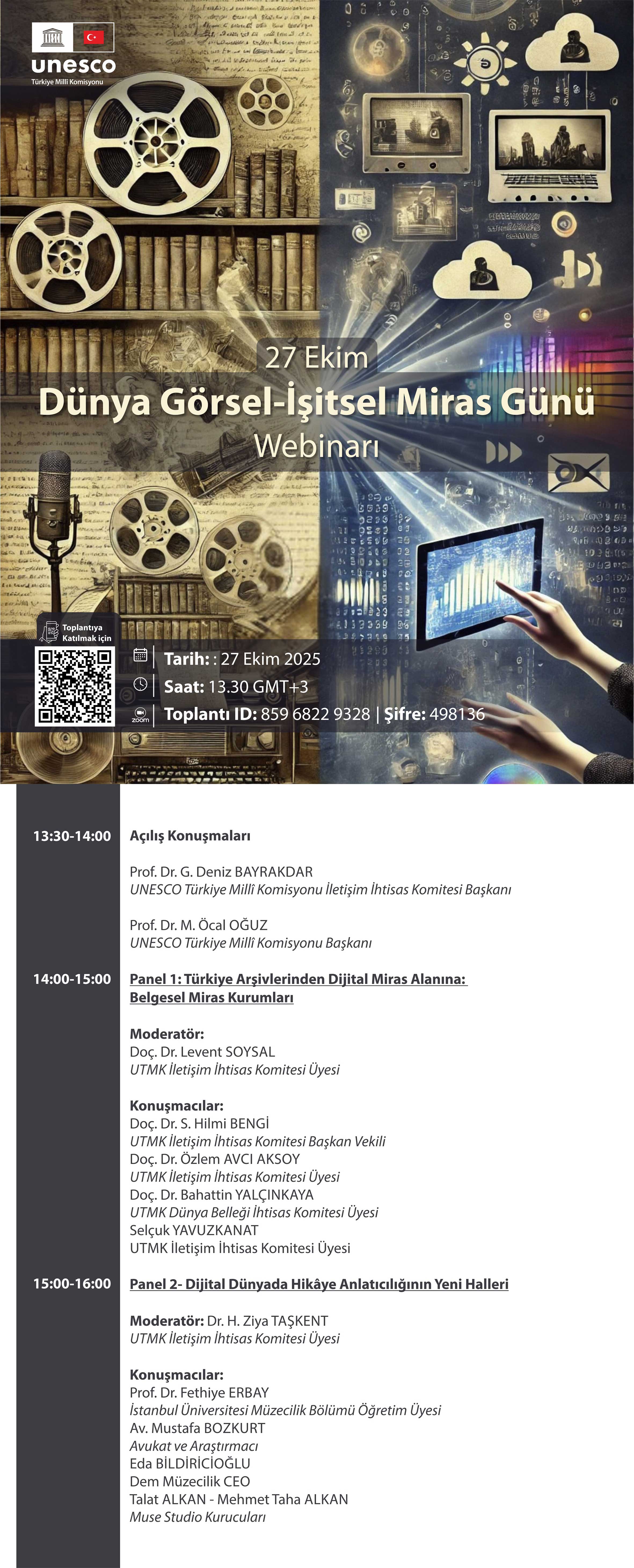 UNESCO Türkiye Millî Komisyonu, 27 Ekim Dünya Görsel-İşitsel Miras Günü kapsamında çevrim içi bir etkinlik düzenlemektedir.