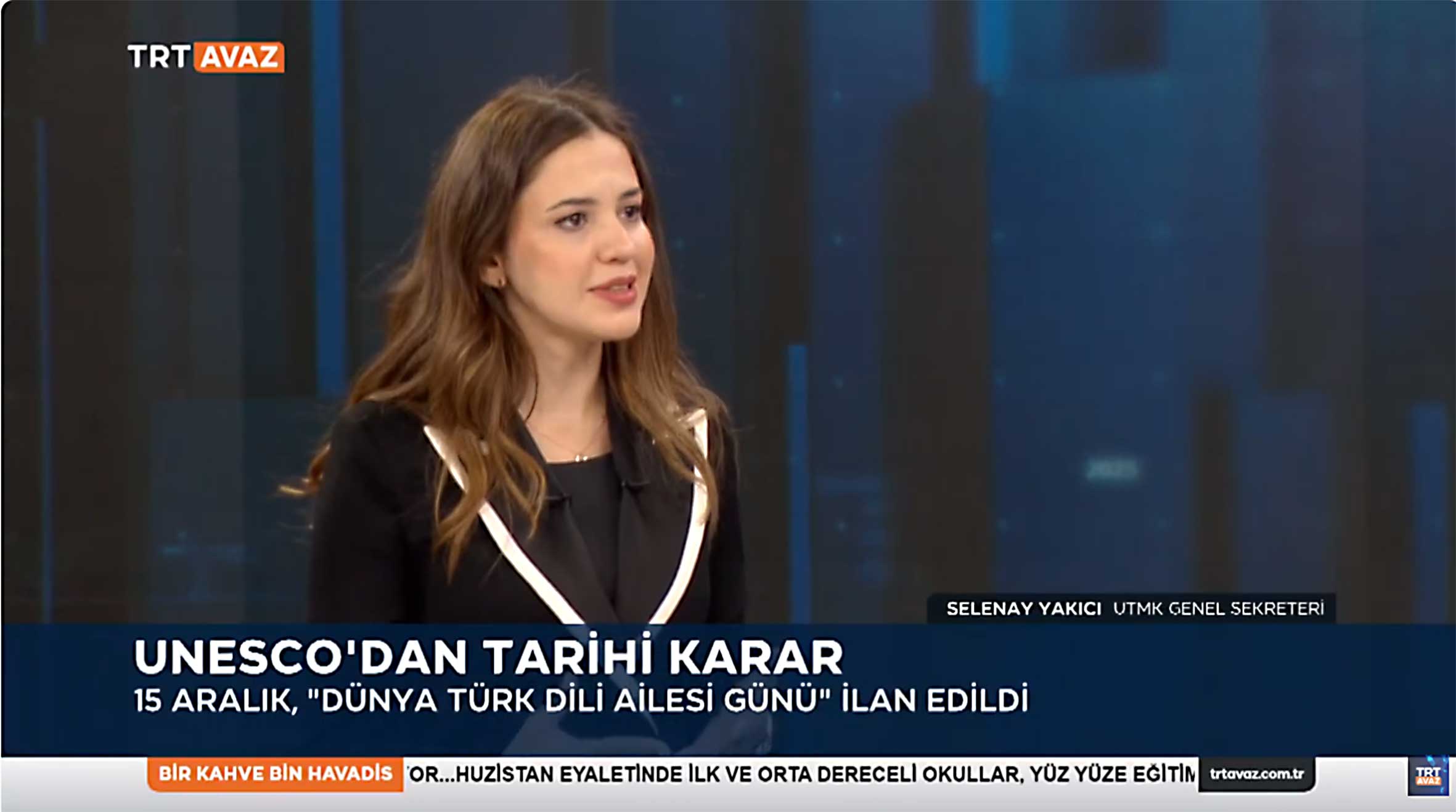 16 Kasım 2025 tarihinde TRT Avaz’da yayınlanan “Bir Kahve Bin Havadis” Programında UNESCO tarafından 15 Aralık Dünya Türk Dili Ailesi Günü ilan edilmesine yer verildi.