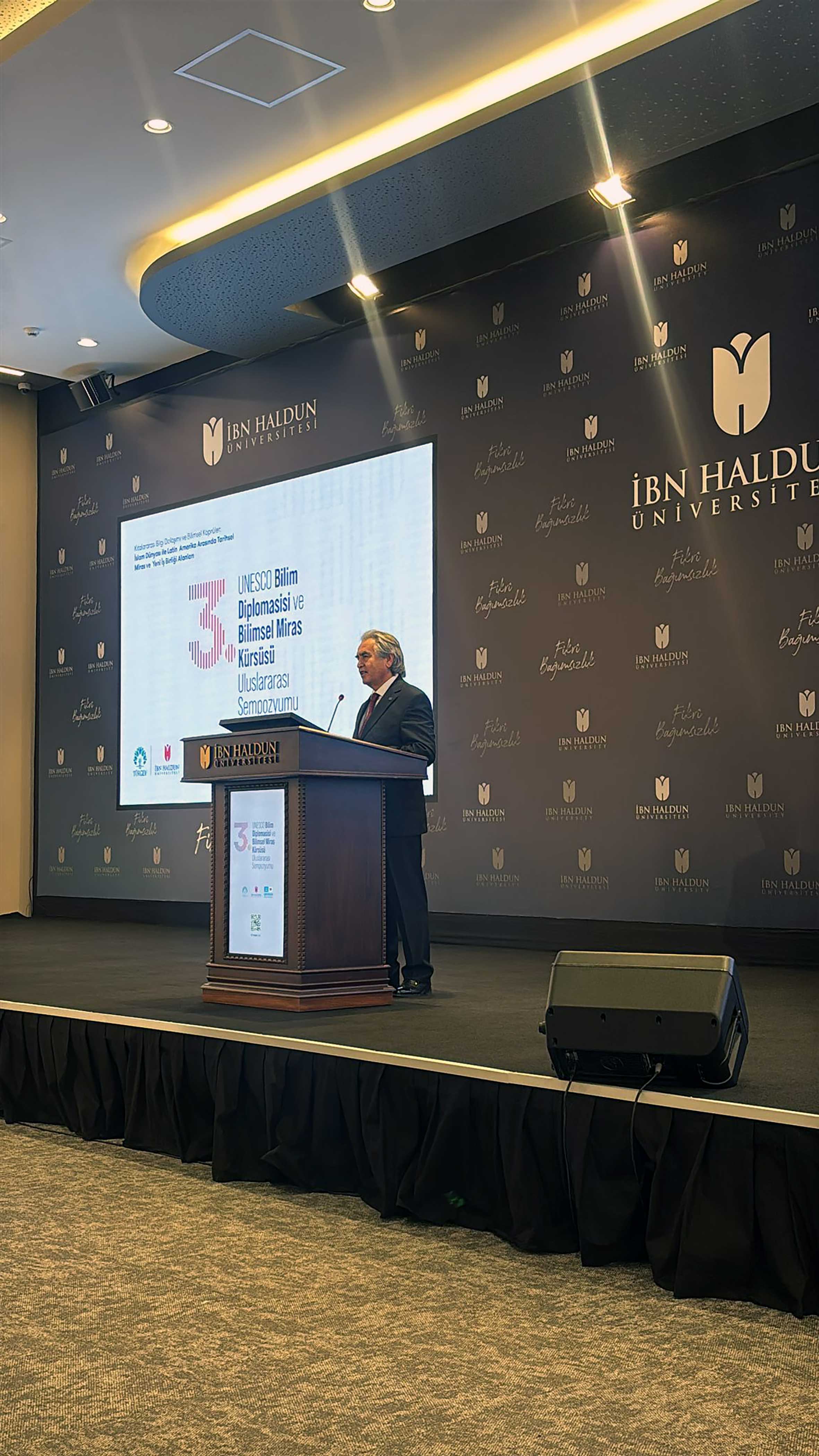 26-28 Kasım 2025 tarşhleri arasında İbn Haldun Üniversitesi ev sahipliğinde “Kıtalararası Bilgi Dolaşımı ve Bilimsel Köprüler: İslam Dünyası ile Latin Amerika Arasında Tarihsel Miras ve Yeni İş Birliği Alanları” temasıyla Üçüncü Bilim Diplomasisi ve Bilimsel Miras Sempozyumu gerçekleştirilmiştir.