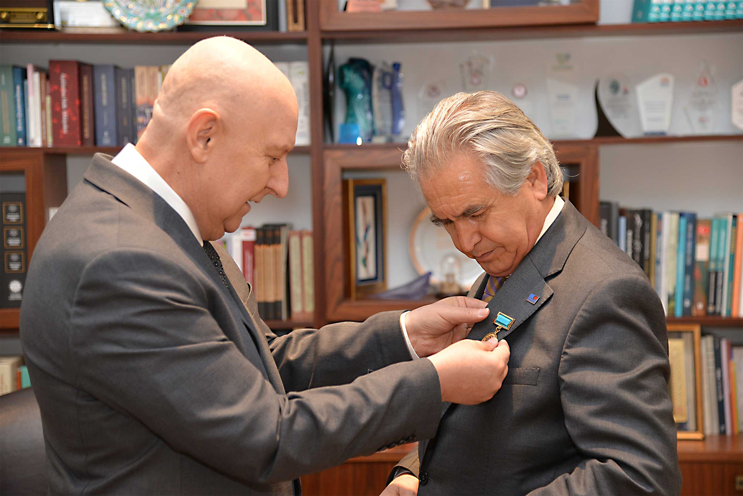 Avrasya Yazarlar Birliği Başkanı Ufuk TUZMAN, UNESCO Türkiye Millî Komisyonu Başkanı Prof. Dr. M. Öcal OĞUZ’a, 15 Aralık Dünya Türk Dili Ailesi Günü ve Türk Dünyası edebî ilişkilerinin gelişmesine yapmış olduğu katkılar için Avrasya Yazarlar Birliği Onur Madalyasını takdim etti.