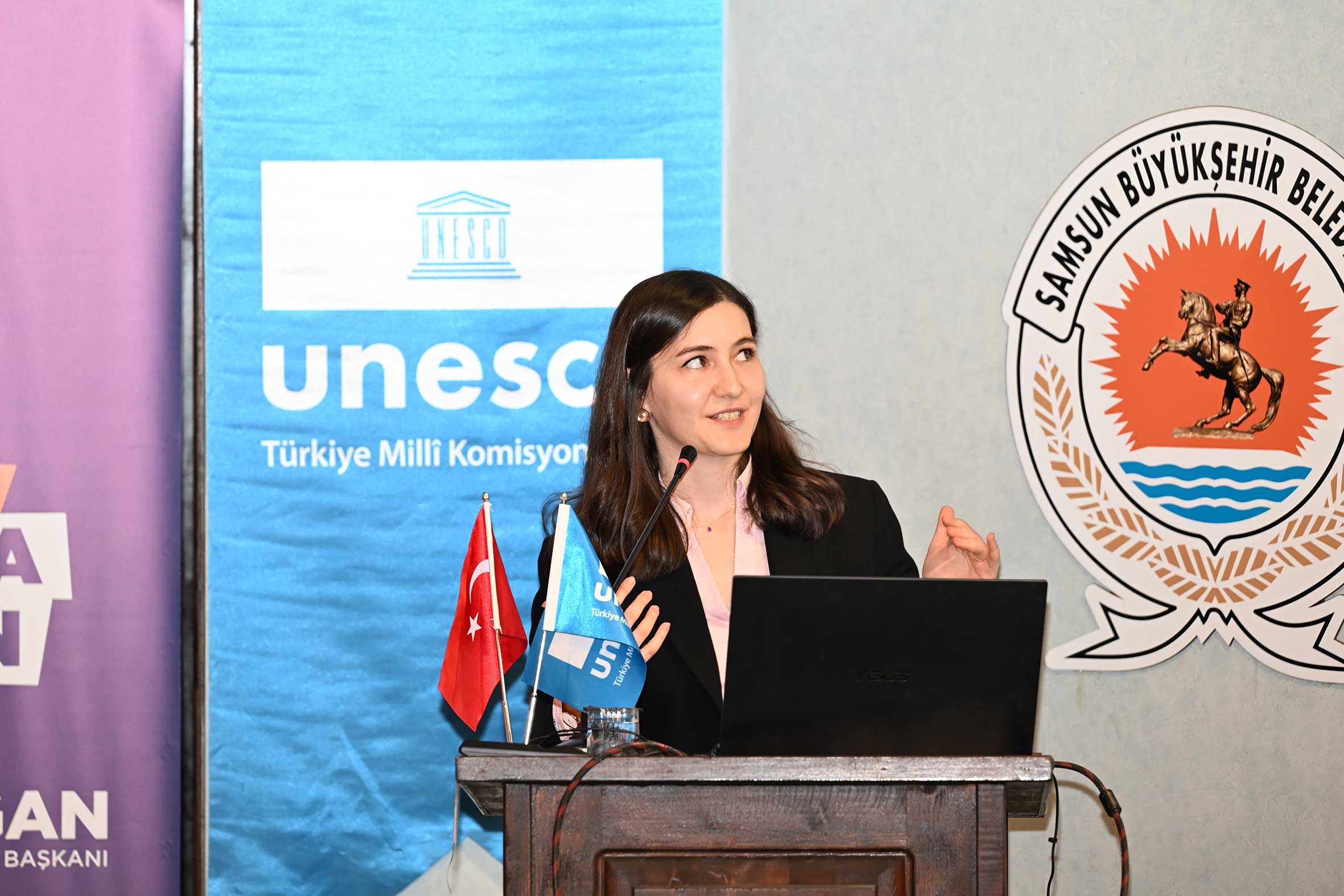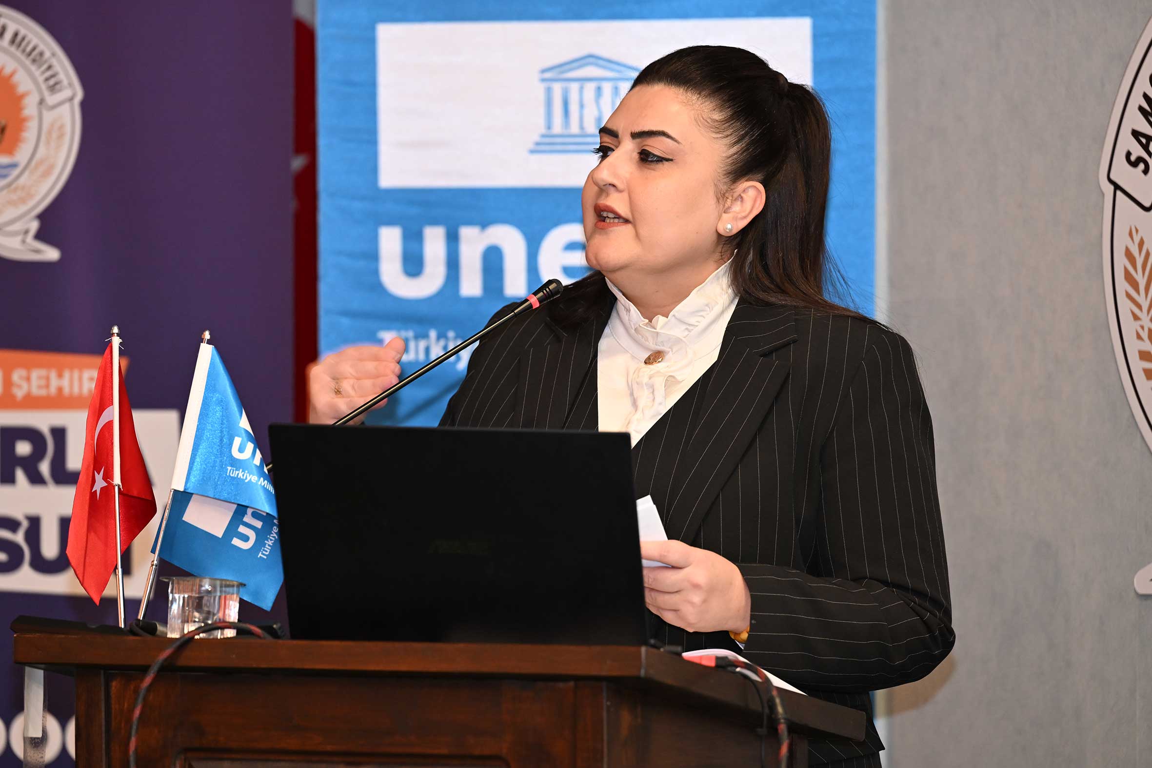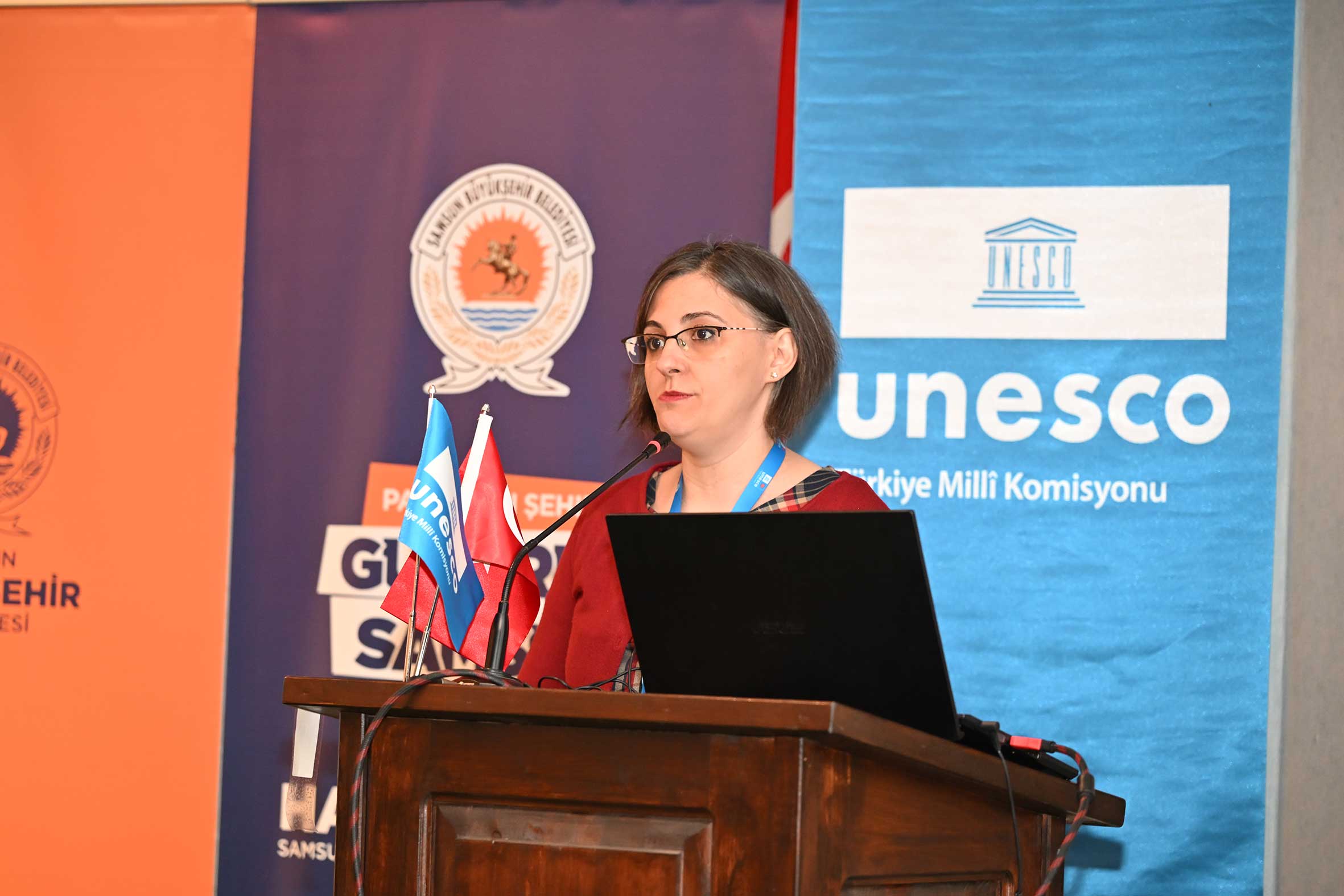 T.C. Kültür ve Turizm Bakanlığı Kültür Varlıkları ve Müzeler Genel Müdürlüğü Genel Müdür Yardımcısı Bülent GÖNÜLTAŞ, “Müzelerimizde Somut Olmayan Kültürel Miras Çalışmaları” başlıklı sunumunda Türkiye’de müzelerde yürütülen somut olmayan kültürel miras odaklı uygulamaları, sergileme yaklaşımlarını ve iyi örnekleri ele aldı. T.C. Kültür ve Turizm Bakanlığı Yaşayan Miras ve Kültürel Etkinlikler Genel Müdürlüğü Uzmanı Ahmet TAN, “Sözleşme’ye Taraf Olmasının 20. Yılında Türkiye’nin Somut Olmayan Kültürel Mirası” başlıklı sunumunda, Türkiye’nin UNESCO Somut Olmayan Kültürel Mirasın Korunması Sözleşmesi’ne taraf olmasından bu yana geçen yirmi yıllık süreçte yürütülen kurumsal çalışmalar ve elde edilen kazanımları değerlendirdi. Samsun Büyükşehir Belediyesi Müzeler ve Kent Belleği Şube Müdürü Aslıhan ARSLAN, “Müzeler ve Kent Belleği Şube Müdürlüğünün Somut Olmayan Kültürel Miras, Müzecilik ve Yerel Yönetim Planlaması” başlıklı sunumunda; Samsun özelinde yürütülen müze faaliyetleri, kent belleğini güçlendirmeye yönelik arşivleme ve belgeleme çalışmaları ile somut olmayan kültürel miras unsurlarının müze uygulamalarına nasıl entegre edilebileceği aktarıldı.