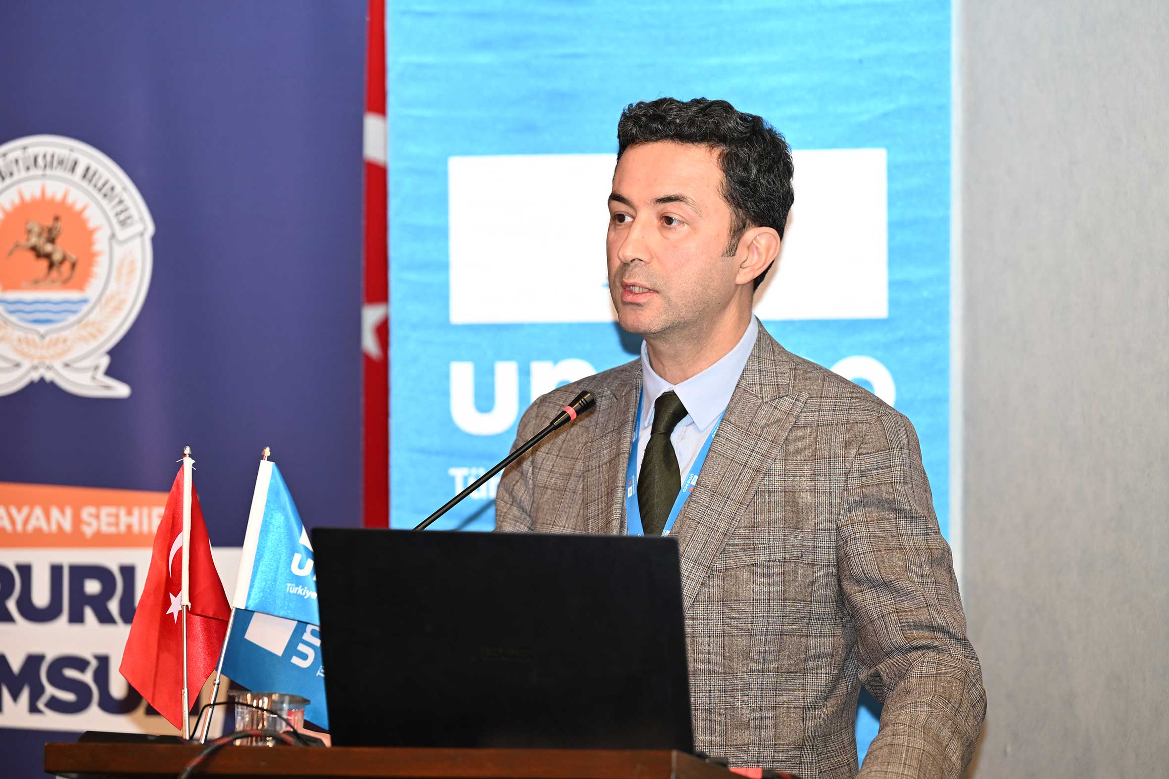 UTMK Somut Olmayan Kültürel Miras İhtisas Komitesi Üyesi Prof. Dr. Evrim ÖLÇER ÖZÜNEL, “Yerel Yönetimler ve Sürdürülebilir Kalkınma İlişkisi” başlıklı sunumunda sürdürülebilir kalkınma amaçları çerçevesinde yerel yönetimlerin rolünü somut olmayan kültürel mirasın korunması ve yaşatılması bağlamında değerlendirdi. UTMK Sürdürülebilir Kalkınma 2030 Hedefleri İhtisas Komitesi Başkan Vekili Prof. Dr. Barış ALPASLAN, “2030 Sürdürülebilir Kalkınma Amaçları Bağlamında Yaratıcı Endüstriler” başlıklı sunumunda yaratıcı endüstrilerin sürdürülebilir kalkınma amaçlarına katkısını kültürel, ekonomik ve toplumsal boyutlarıyla ele alındı.