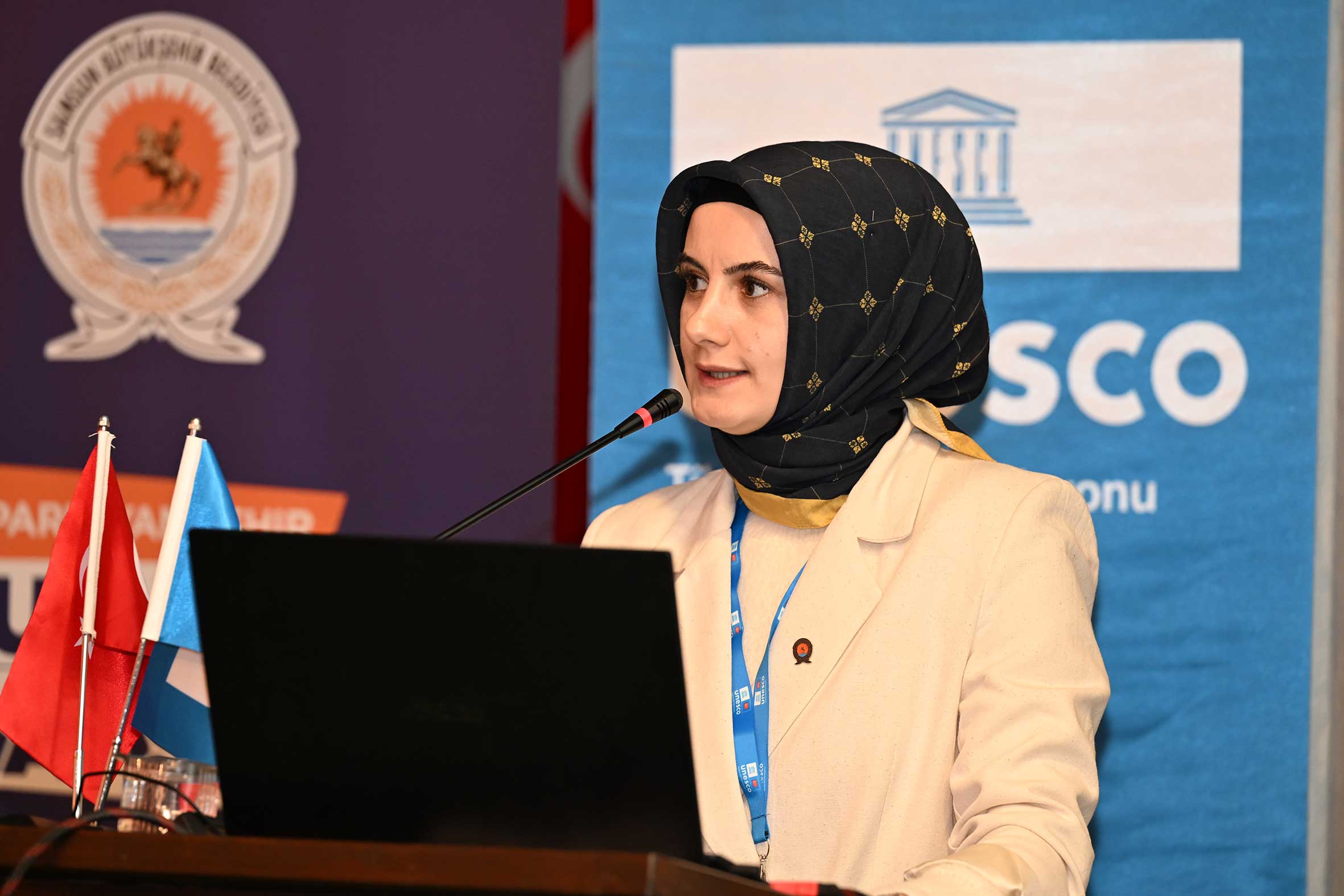 Programın ikinci oturumu, UTMK Genel Sekreter Yardımcısı V. Dr. Azize ÖKTEN’in “UNESCO Şehir Ağları ve Programlarının Yerel Yönetimlerle İlişkisi” başlıklı sunumuyla başladı. Sayın ÖKTEN, sunumunda UNESCO’nun Yaratıcı Şehirler Ağı başta olmak üzere çeşitli şehir ağları ve tematik programlarının yerel yönetimler açısından sunduğu fırsatları ve sorumlulukları ele aldı. UTMK UNESCO Uzmanı Cansu TÜRK, “Somut ve Somut Olmayan Kültürel Mirasın Bütüncül Korunması: Sözleşmeler Arası Bir Yaklaşım” konulu sunumunda 1972 ve 2003 Sözleşmeleri arasındaki entegrasyona dikkat çekerek somut ve somut olmayan kültürel mirasın bütünleşik korunması örnekleri üzerinde durdu.