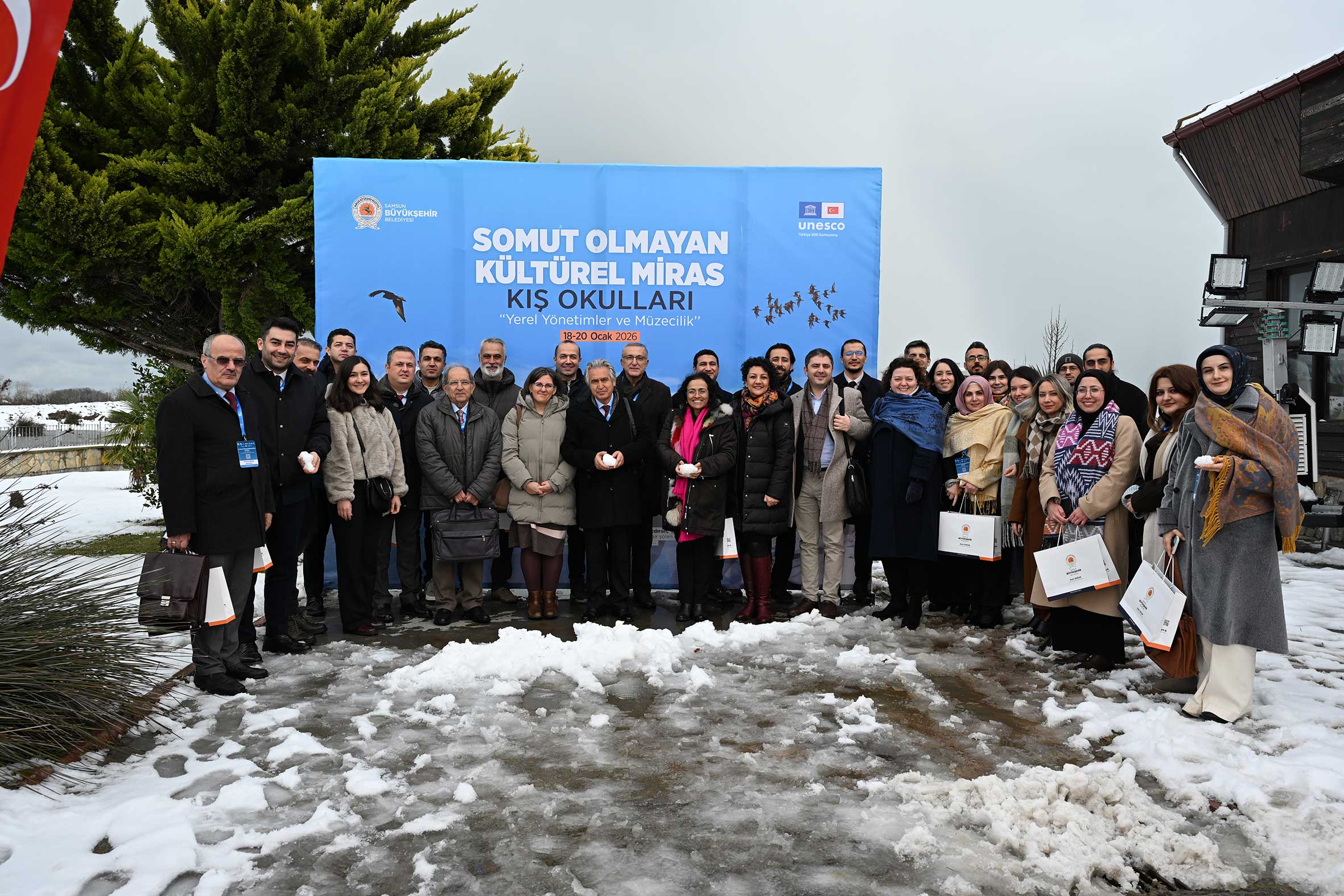 Türkiye tarafından Somut Olmayan Kültürel Mirasın Korunması Sözleşmesi’nin kabul edildiği yılda “Yerel Yönetimler ve Somut Olmayan Kültürel Miras Müzeleri” temasıyla düzenlenen Kış Okulu’na; belediye, üniversite, kalkınma ajansları ve müze temsilcileri katıldı. Kış Okulu’nun açılış konuşmaları bölümünde; UNESCO Türkiye Millî Komisyonu Başkanı Prof. Dr. M. Öcal OĞUZ, T.C. Kültür ve Turizm Bakanlığı Yaşayan Miras ve Kültürel Etkinlikler Genel Müdür Yardımcısı Dr. Serkan Emir ERKMEN, T.C. Kültür ve Turizm Bakanlığı Kültür Varlıkları ve Müzeler Genel Müdür Yardımcısı V. Bülent GÖNÜLTAŞ, Ondokuz Mayıs Üniversitesi Genel Sekreteri Prof. Dr. Erhan Burak PANCAR, Samsun Büyükşehir Belediyesi, Kültür ve Sosyal İşler Daire Başkanı Cihan GÜLLER, Samsun Büyükşehir Belediyesi Genel Sekreter Yardımcısı Necmi ÇAMAŞ ve Orta Karadeniz Kalkınma Genel Sekreteri Mehlika DİCLE söz aldı. Konuşmalarda; somut olmayan kültürel mirasın korunması ve yaşatılmasında kurumlar arası iş birliğinin önemi, yerel yönetimlerin ve üniversitelerin bu süreçte üstlendiği rollerle müzelerin farkındalık oluşturmadaki katkıları vurgulandı.