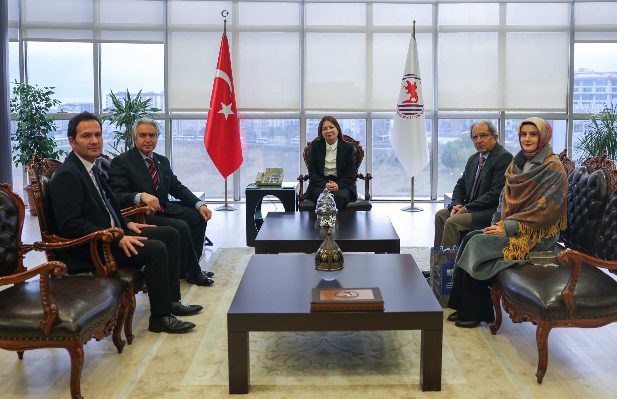 Kış Okulu programı kapsamında UTMK Başkanı Prof. Dr. M. Öcal OĞUZ, Samsun Valisi Orhan TAVLI, Samsun Büyükşehir Belediye Başkanı Halit DOĞAN ve Ondokuz Mayıs Üniversitesi Rektörü Prof. Dr. Fatma AYDIN’ı makamında ziyaret etti. Gerçekleştirilen ziyaretlerde, somut olmayan kültürel mirasın korunması ve yaşatılmasına yönelik yürütülen çalışmalar ile yerel yönetimler, üniversiteler ve ilgili kurumlar arasındaki iş birliği imkânları ele alındı; Kış Okulu’nun ulusal ve uluslararası düzeyde oluşturacağı katkılar üzerine görüş alışverişinde bulunuldu.