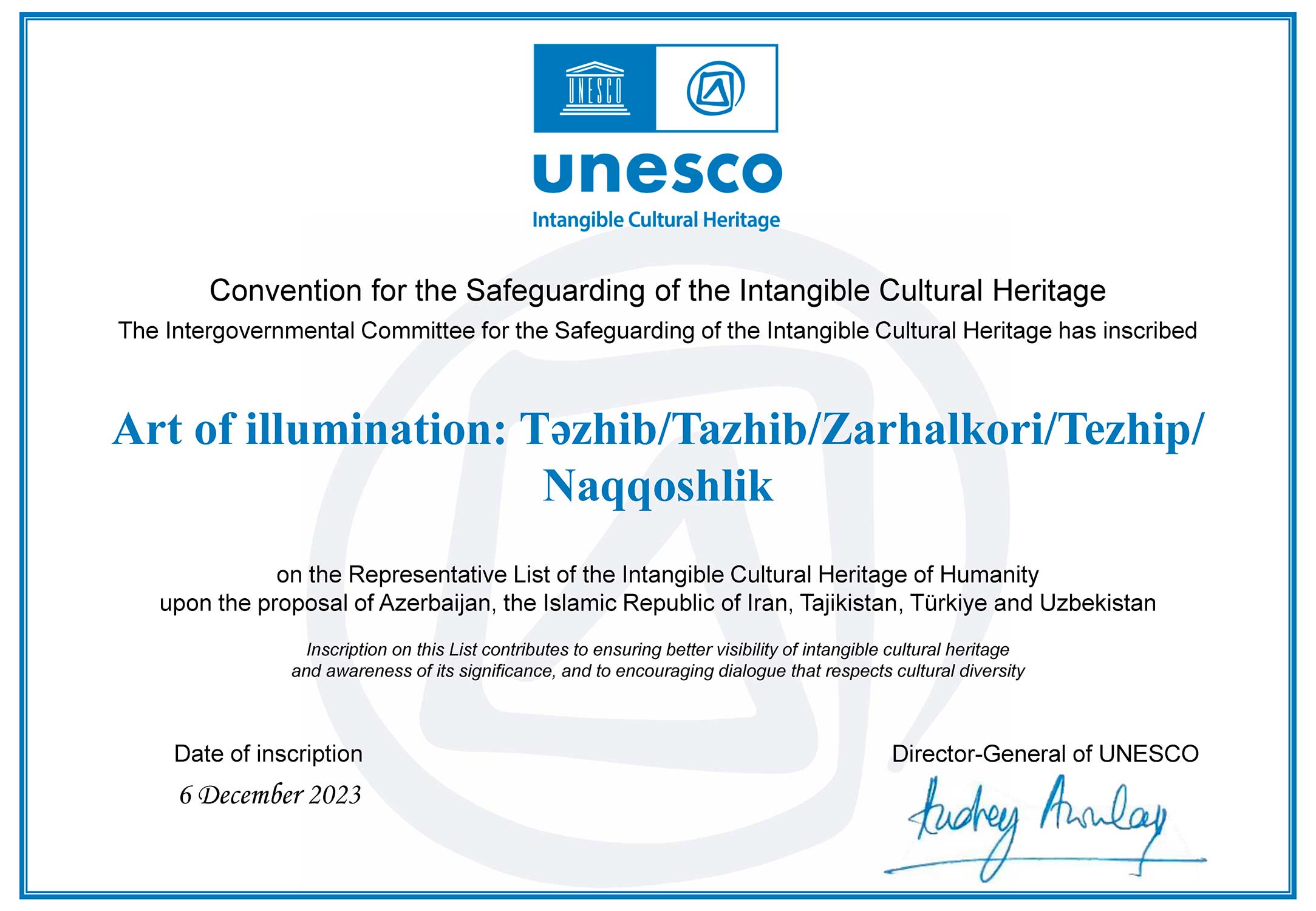 UNESCO İnsanlığın Somut Olmayan Kültürel Mirası Temsili Listesi