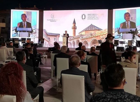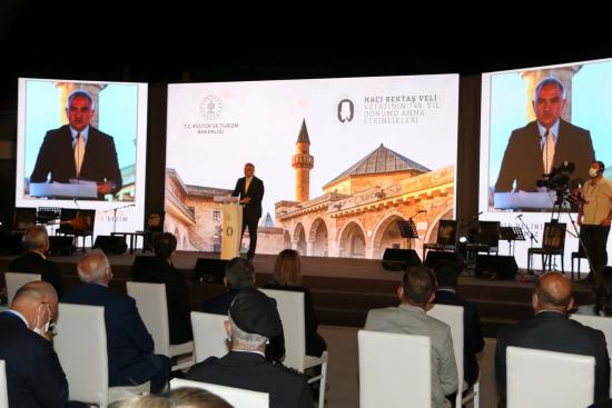 Hacı Bektaş Veli’nin 749. Vefat Yıl Dönümü vesilesiyle “Bir Velinin Varisiyiz Mirasımız Aşktır” temasıyla gerçekleştirilen programda Kültür ve Turizm Bakanı Mehmet Nuri ERSOY, Nevşehir Valisi İnci SEZER BECEL ve Nevşehir Belediye Başkanı Rasim ARI Hacı Bektaş öğretileri doğrultusunda günün anlam ve önemine ilişkin konuşmalarını yaptı. UNESCO 41. Genel Konferans Başkanı Büyükelçi Ahmet Altay CENGİZER de video mesajıyla programa katılım sağladı.