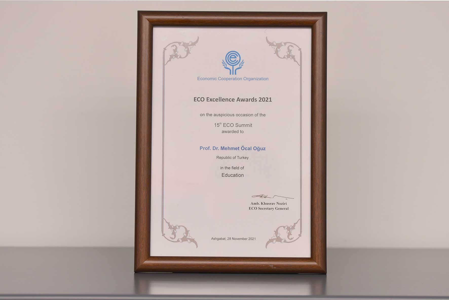 Ekonomik İşbirliği Teşkilatı'nın (EİT) 15. Zirvesi kapsamında 28 Kasım 2021 tarihinde Aşkabat'ta gerçekleştirilen EİT Ödülleri Töreni'nde UNESCO Türkiye Millî Komisyonu Başkanı Prof. Dr. M. Öcal OĞUZ eğitim alanındaki çalışmaları doğrultusunda ödüle layık görülmüştür. Sayın OĞUZ'a ödülü Dışişleri Bakanlığında Çok Taraflı Ekonomik İşler Genel Müdür Yardımcısı Rauf Alp DENKTAŞ tarafından takdim edilmiştir.