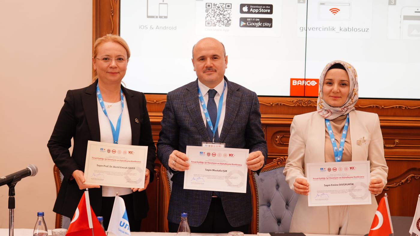 Konferansın “Fırsat Eşitliği ve Kamu Politikaları” temalı ilk oturumu, T.C. Cumhurbaşkanlığı Strateji ve Bütçe Başkanlığı Çevre, İklim Değişikliği ve Sürdürülebilir Kalkınma Dairesi Başkanı Feyza ELDENİZ moderatörlüğünde yürütüldü. Panelde Dilek Okkalı ŞANALMIŞ “12. Kalkınma Planı Kapsamında Fırsat Eşitliği ve Sosyal Politikalar”, Zeyneb ERSAYIN da “Bölgesel Gelişmede Fırsat Eşitliğinin Önem ve Sosyal Gelişmeyi Destekleme Programı Kapsamında Yürütülen Örnek Projeler” temalı konuşmalarını yaptılar.
