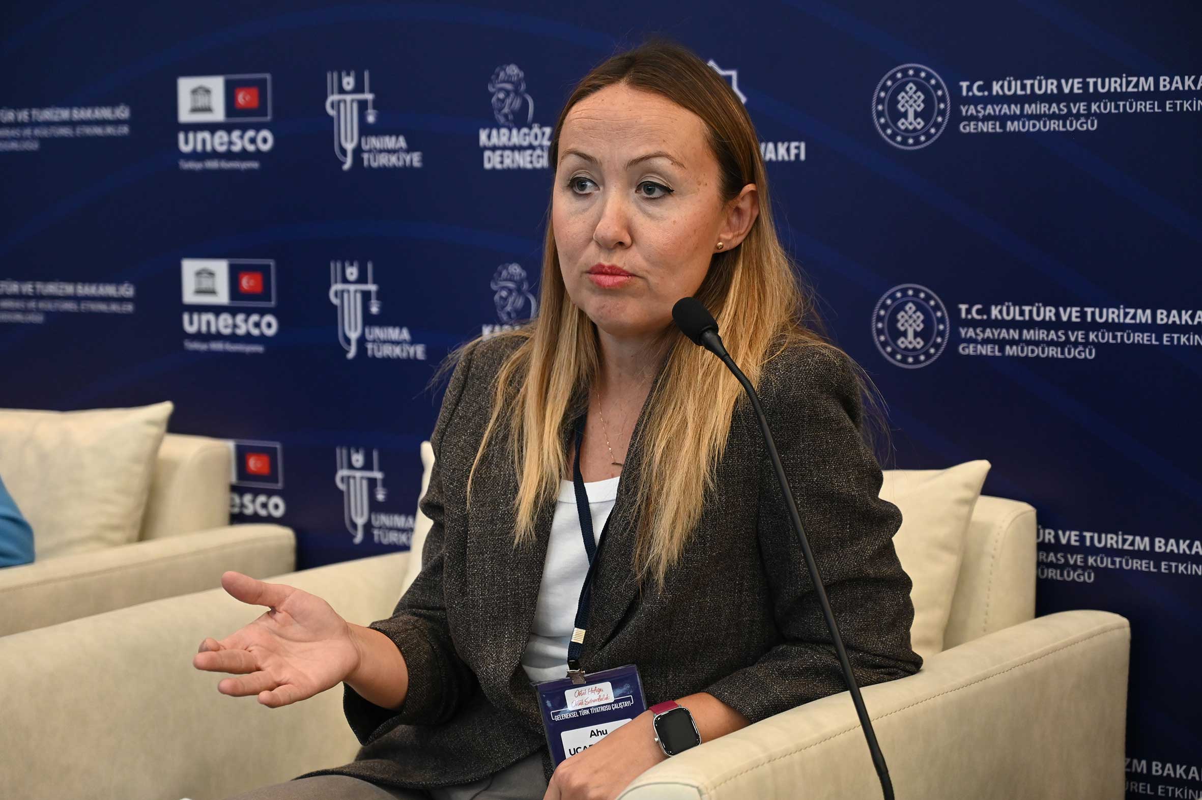 Açılış konuşmalarının ardından T.C. Kültür ve Turizm Bakanlığı Yaşayan Miras ve Kültürel Etkinlikler Genel Müdür Yardımcısı Dr. Serkan Emir ERKMEN moderatörlüğünde; UTMK Somut Olmayan Kültürel Miras İhtisas Komitesi Raportörü Bilge TÜZEL ERGİN tarafından “UNESCO ve Kültür Sektörü”, Uzman Ahu UÇAR SEVER tarafından “Karagöz ve Geleneksel Türk Tiyatrosunun SOKÜM Kapsamındaki Konumu” ve Dr. Yücel ÖZDEMİR ile Nilüfer Zeynep ÖZÇÖREKÇİ GÖL tarafından “ Folklorik Tahrifat, Yozlaşma, Unutulma Riskleri ve İyi Örnek Uygulamaları” başlıklı sunumlar yapıldı.