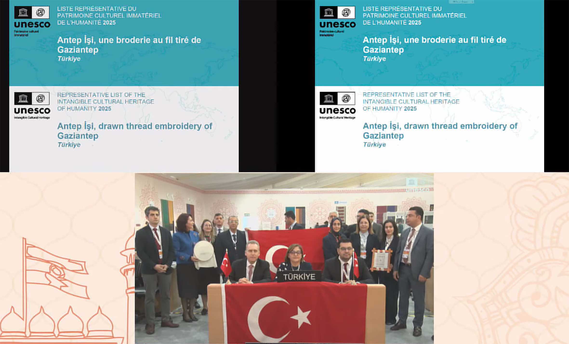 11 Aralık 2025 tarihinde Türkiye tarafından “Antep İşi Nakışı” dosyası İnsanlığın Somut Olmayan Kültürel Mirası Temsilî Listesine kaydedildi. Böylelikle, Türkiye’nin Somut Olmayan Kültürel Miras Listelerine kayıtlı unsur sayısı 32 oldu.