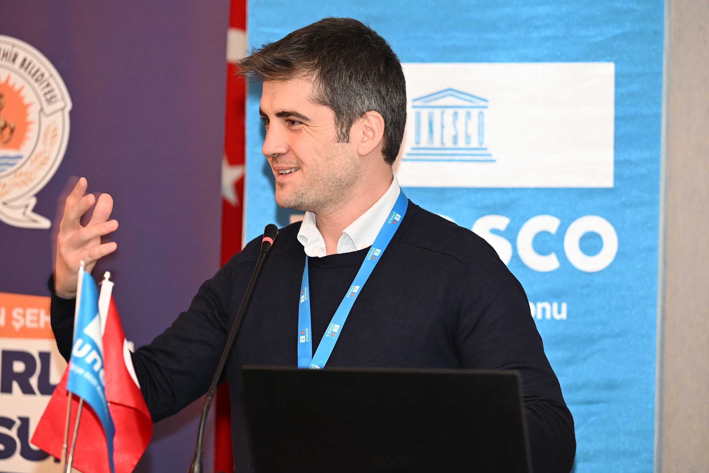UTMK Somut Olmayan Kültürel Miras İhtisas Komitesi Üyesi Prof. Dr. Evrim ÖLÇER ÖZÜNEL, “Yerel Yönetimler ve Sürdürülebilir Kalkınma İlişkisi” başlıklı sunumunda sürdürülebilir kalkınma amaçları çerçevesinde yerel yönetimlerin rolünü somut olmayan kültürel mirasın korunması ve yaşatılması bağlamında değerlendirdi. UTMK Sürdürülebilir Kalkınma 2030 Hedefleri İhtisas Komitesi Başkan Vekili Prof. Dr. Barış ALPASLAN, “2030 Sürdürülebilir Kalkınma Amaçları Bağlamında Yaratıcı Endüstriler” başlıklı sunumunda yaratıcı endüstrilerin sürdürülebilir kalkınma amaçlarına katkısını kültürel, ekonomik ve toplumsal boyutlarıyla ele alındı.