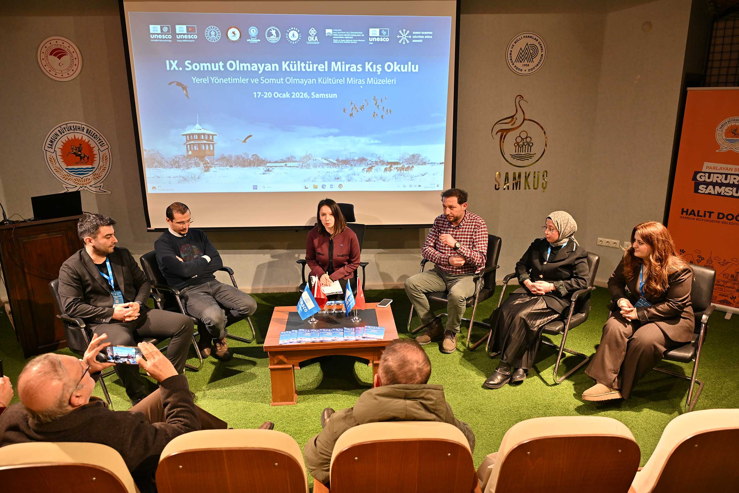 Türkiye tarafından Somut Olmayan Kültürel Mirasın Korunması Sözleşmesi’nin kabul edildiği yılda “Yerel Yönetimler ve Somut Olmayan Kültürel Miras Müzeleri” temasıyla düzenlenen Kış Okulu’na; belediye, üniversite, kalkınma ajansları ve müze temsilcileri katıldı. Kış Okulu’nun açılış konuşmaları bölümünde; UNESCO Türkiye Millî Komisyonu Başkanı Prof. Dr. M. Öcal OĞUZ, T.C. Kültür ve Turizm Bakanlığı Yaşayan Miras ve Kültürel Etkinlikler Genel Müdür Yardımcısı Dr. Serkan Emir ERKMEN, T.C. Kültür ve Turizm Bakanlığı Kültür Varlıkları ve Müzeler Genel Müdür Yardımcısı V. Bülent GÖNÜLTAŞ, Ondokuz Mayıs Üniversitesi Genel Sekreteri Prof. Dr. Erhan Burak PANCAR, Samsun Büyükşehir Belediyesi, Kültür ve Sosyal İşler Daire Başkanı Cihan GÜLLER, Samsun Büyükşehir Belediyesi Genel Sekreter Yardımcısı Necmi ÇAMAŞ ve Orta Karadeniz Kalkınma Genel Sekreteri Mehlika DİCLE söz aldı. Konuşmalarda; somut olmayan kültürel mirasın korunması ve yaşatılmasında kurumlar arası iş birliğinin önemi, yerel yönetimlerin ve üniversitelerin bu süreçte üstlendiği rollerle müzelerin farkındalık oluşturmadaki katkıları vurgulandı.