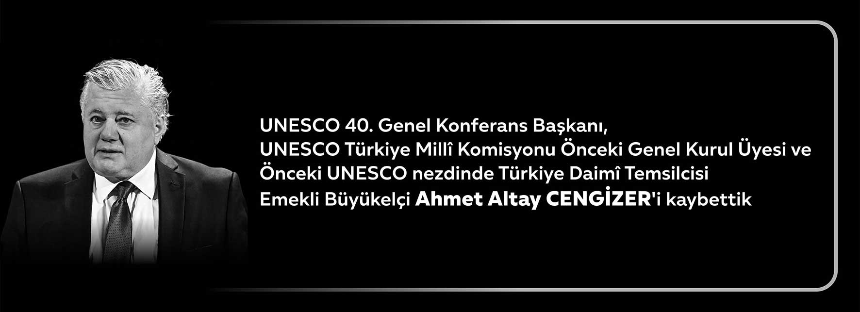 UNESCO Türkiye Millî Komisyonu Önceki Genel Kurul Üyesi, Önceki UNESCO nezdinde Türkiye Daimî Temsilcisi ve UNESCO 40. Genel Konferans Başkanı Emekli Büyükelçi Ahmet Altay CENGİZER’in vefatını derin bir üzüntüyle öğrenmiş bulunuyoruz. Türk diplomasisinin entellektüel bir ismi olarak UNESCO çalışmalarına sunduğu kıymetli katkılar daima saygıyla hatırlanacaktır