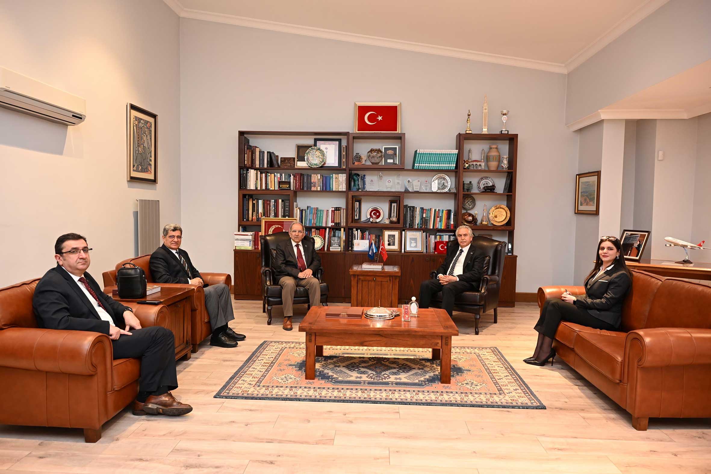 TMMOB Jeoloji Mühendisleri Odası Başkanı Hüseyin ALAN ve UTMK Doğa Bilimleri İhtisas Komitesi Üyesi Prof. Dr. Mehmet EKMEKÇİ, 24 Nisan 2026 tarihinde UNESCO Türkiye Millî Komisyonu Başkanı Prof. Dr. M. Öcal OĞUZ’u makamında ziyaret etti. UTMK Yönetim Kurulu Başkan Vekili Prof. Dr. Nizamettin KAZANCI ve Sektör Uzmanı Nakış Selcen DENKTAŞ’ın da katıldığı ziyarette, 78. Jeoloji Kurultayına ilişkin değerlendirmeler yapılmış, UNESCO çalışma alanları ve olası iş birlikleri kapsamında istişarelerde bulunulmuştur.