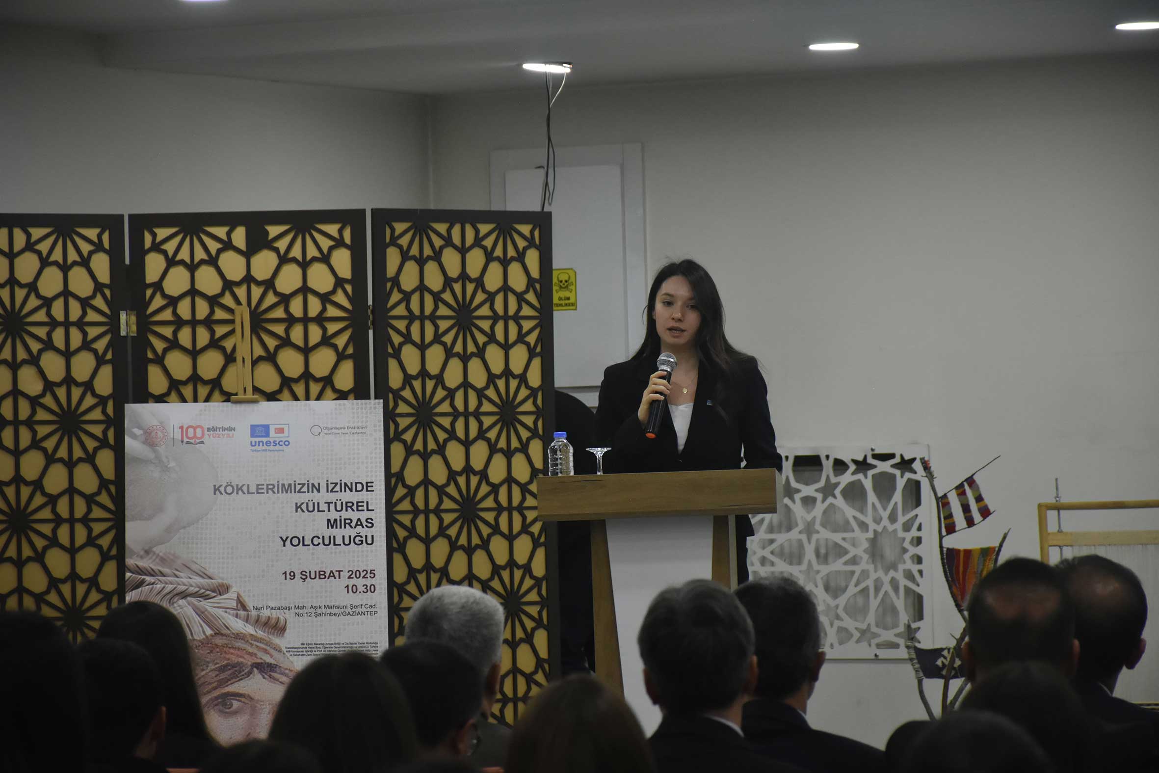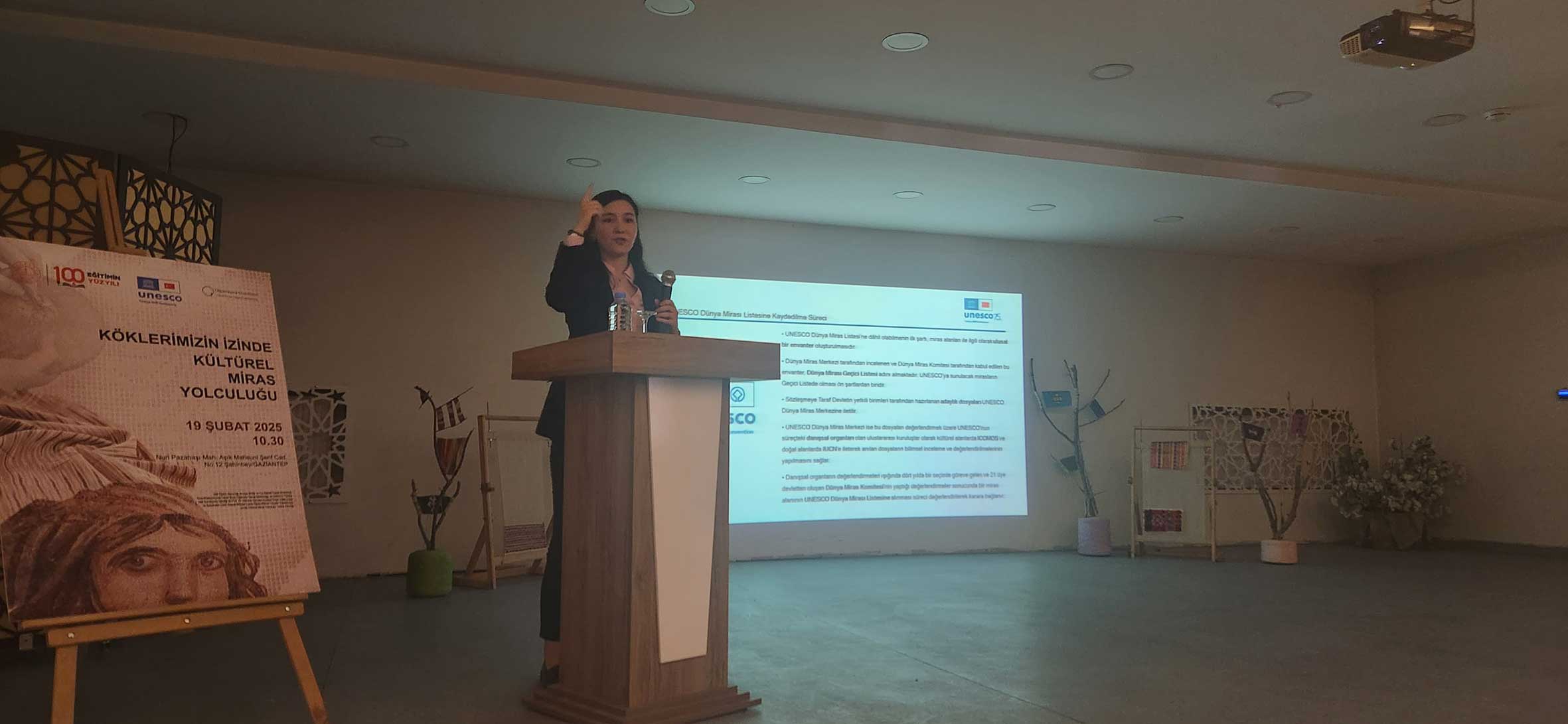 Köklerimizin İzinde Kültürel Miras Yolculuğu Eğitim Programı 19 Şubat 2025 tarihinde Millî Eğitim Bakanlığı ile UNESCO Türkiye Millî Komisyonu iş birliğinde ve Gaziantep Olgunlaşma Enstitüsü ev sahipliğinde Gaziantep’te gerçekleştirildi. Lise öğrencilerine UNESCO’nun kültür programlarına ilişkin bilgi vermek, somut ve somut olmayan kültürel mirası koruma farkındalığını artırmak amacıyla düzenlenen eğitim programı; Gaziantep İl Millî Eğitim Müdürü Sayın Dr. Erdal KILINÇ ve Hayat Boyu Öğrenme Genel Müdürlüğü İzleme ve Değerlendirme Daire Başkanı Sayın Ferhat DAVRAN’ın açılış konuşmalarıyla başladı. Açılış konuşmalarını MEB Avrupa Birliği ve Dış İlişkiler Genel Müdürü Sayın Tuba KORKMAZ’ı temsilen Sayın Süheyla DEMİREL YAZICI ve UNESCO Türkiye Millî Komisyonu Başkanı Sayın Prof. Dr. M. Öcal OĞUZ’u temsilen Sayın Bilge TÜZEL ERGİN gerçekleştirdi.